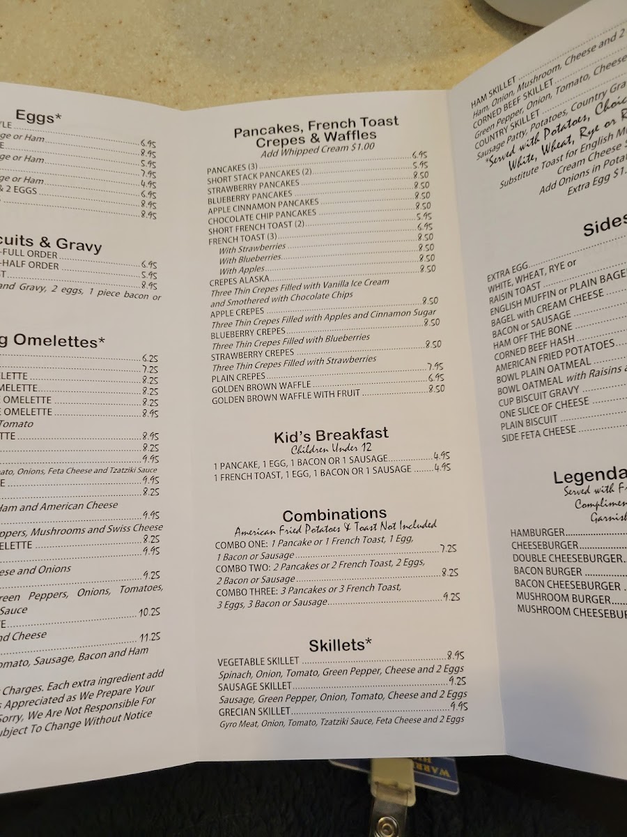 Ham, Green Peppers, Onions, & American Cheese. Skillets served w/ 2 Eggs